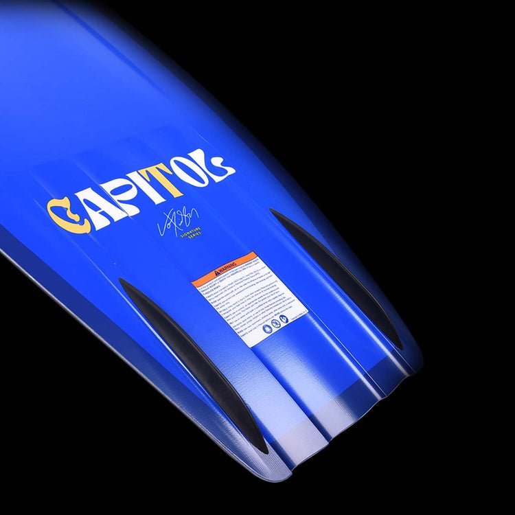 Get ready for an exhilarating ride with the Hyperlite Capitol Wakeboard, co-designed by Cory Teunissen and Scott Bouchard. This board is engineered for those who crave an explosive and dynamic wakeboarding experience. The Blended 3-Stage Rocker delivers a massive pop off the wake, while the sharp exit channels ensure a speedy and clean release. The Dual Concave Base through the belly keeps the board fast while carving and on approach to the wake. With minimized swing weight and smooth edge-to-edge transitions, the Capitol is your ticket to an adrenaline-pumping ride.