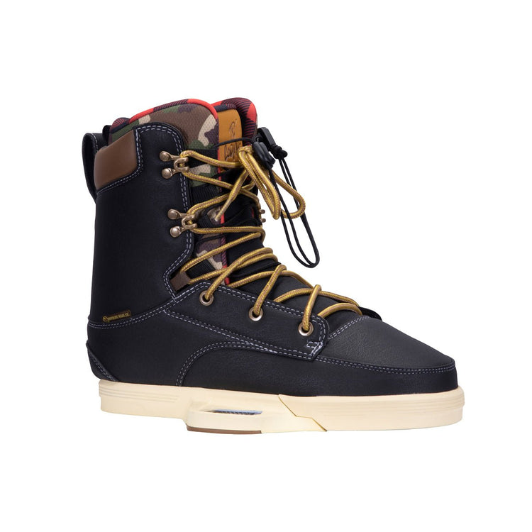 The Fusion plate platform featuring our walkable pro liner is a great option for all cable athletes. Cody Hesse felt a boot with a more supportive walk liner and full lace up construction could make his signature binding stand apart from the rest. Modelled after boxing shoes, which Cody wears performing stunt work, they provide support, grip and protection delivering a precise connection to your board with enhanced movement. The Codyak liner incorporates a larger than normal lace zone for increased internal support. The shell of the Codyak features a single lace closure with upper cuff lace hooks for easy in and out. This new lacing configuration also allows a rider to customize the tension of the shell for more or less range of motion.